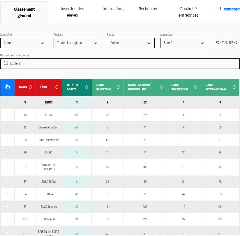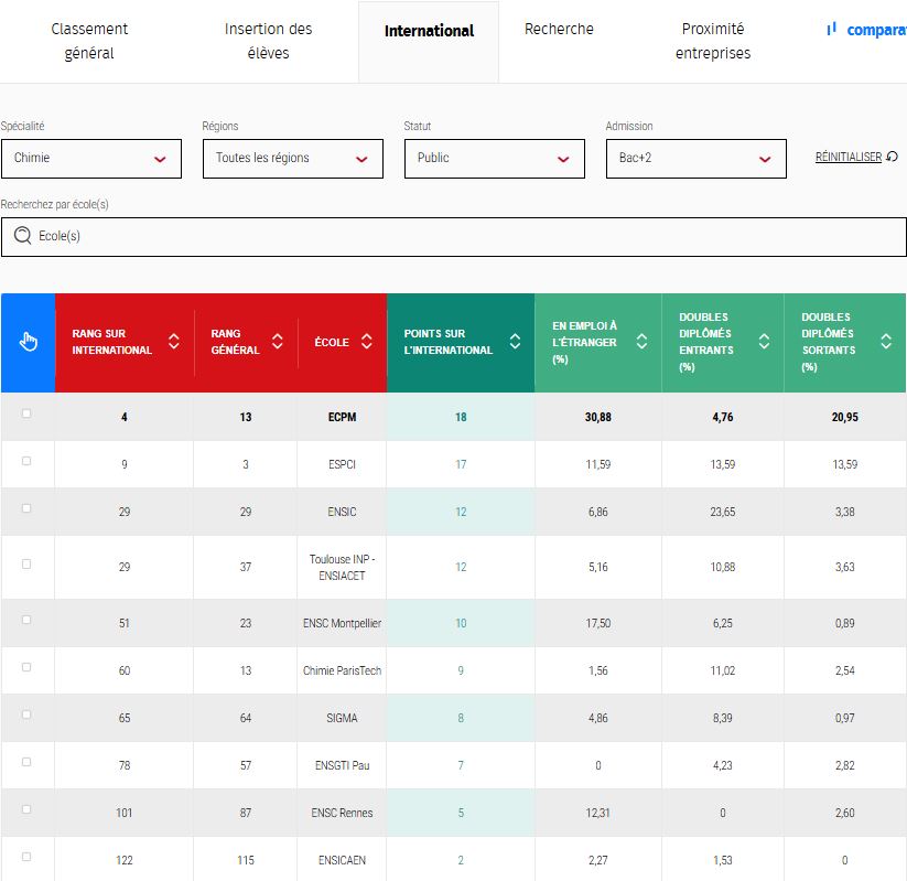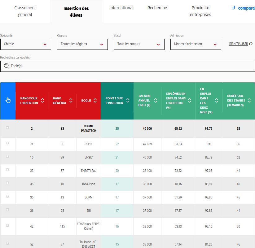 • Sa 3e place parmi les écoles de chimie pour l'insertion professionnelle : un gage de la reconnaissance de nos diplômés sur le marché du travail.